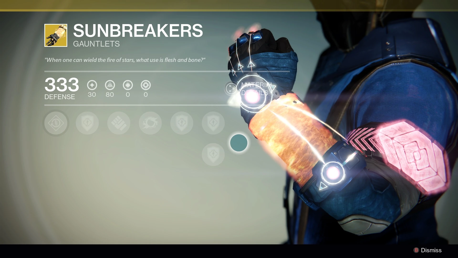 Sunbreakers are a pair of exotic Warlock gauntlets. They can be purchased from Xûr for 13 Strange Coins.